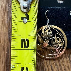 These elegant gold earrings feature a beautiful hummingbird design, perfect for adding a touch of nature-inspired charm to any outfit.