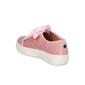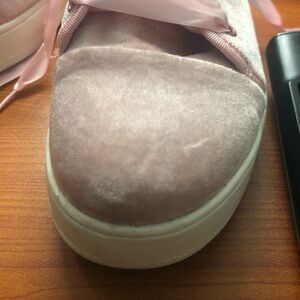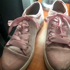 Wild Diva velvet ribbon low top creeper sneaker • satin ribbon laces • velvet material upper • left shoe has small scrape