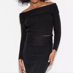 Wild Fable Black Off-the-Shoulder Sweater Ribbed Knit. Whimsigoth. Dark Summer.