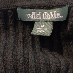 Embrace timeless style with this Wild Fable off-the-shoulder sweater, featuring a classic ribbed knit texture. The soft, stretchy material ensures a comfortable fit, while the wide neckline adds a touch of elegance. Size M(all measurements stretch)measures 30 at chest, 28 at bottom hem. 15 long from shoulder to hem. Perfect for cozy fall or winter days, this versatile black sweater is a wardrobe essential.