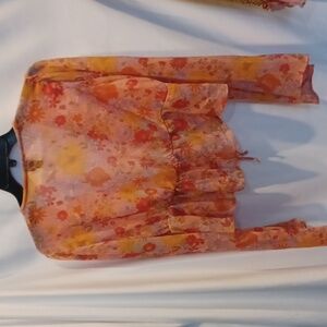 Wild Fable Sheer Orange Floral Top Women's Size Medium