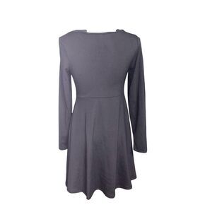Black twist front skater dress. 3/4 sleeve. V-neckline. Above knee. 88% polyester/12% spandex. Size: large. Preowned in good condition.