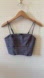 Stylish plaid crop top with spaghetti straps. Perfect for casual outings. Available in a chic gray color.