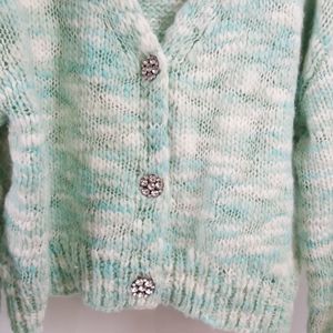 Cardigan knitted in a variegated color scheme.