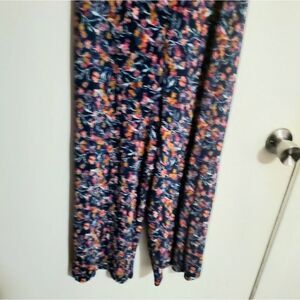 Multi-colored floral sleeveless jumpsuit. Light and stretchy. Great spring and summer piece. Pre-owned in good condition. Please refer to pictures for best description and condition verification.
