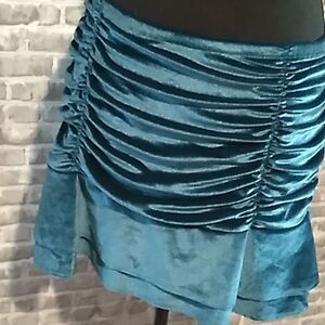 Wild Fable y2k velvet-soft blue mini ruffle skirt L