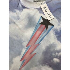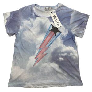 WildFox Blue Clouds Star Lightning Crew Neck T Shirt Top Boutique Sz Medium NEW