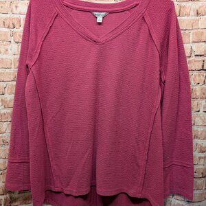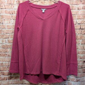 WildFox Haley Brushed Top Waffle Knit PINK Size Med pit to pit 21 Length 24 front 26 back 6001