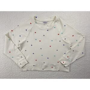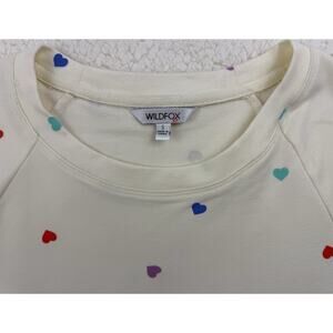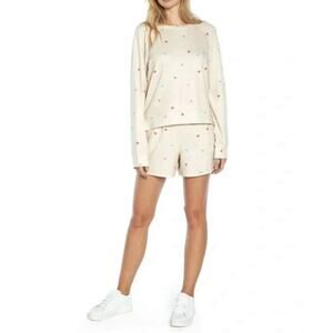 WildFox Hearts Print Short Lounge Set Women Small Longsleeve Sweatshirt in Oatmeal with Multicolored Little Hearts