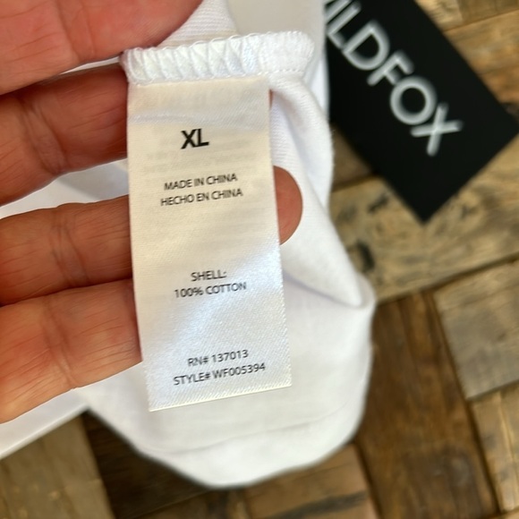 WildFox Paris Is My Lover Baby Tee Shirt NWT. White shirt sleeve tee. Words and lips graphic on chest in black and red. 100% cotton. New with tags(I did see a small, light smudge/mark on back shoulder—see last photo. I did not notice it at first and did not try to remove)