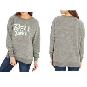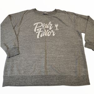WildFox Pour Favor Wine Lightweight Pullover Sweatshirt Size Large Gray & White