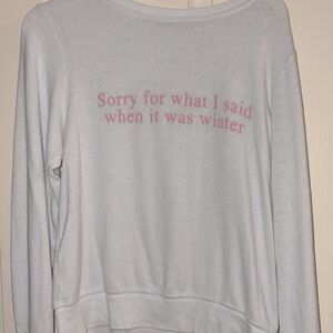 🦊💋 WildFox Sorry For What I Said When it was Winter Made from a pre pilled, worn in and slightly distressed fabric, snuggling up in this is gonna make you feel like yer cuddling up next to clouds