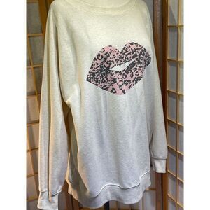 Adorable oversized fleece from WildFox. Size large. Lipstick graphic with animal print. 58% cotton, 38% polyester, 4% spandex. Machine washable. Made in China. Excellent condition. Nonsmoking home.