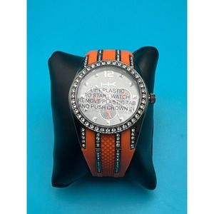 WildLife Heidi Klum Black Dial Crystal Accent Round Case Orange Band Watch New