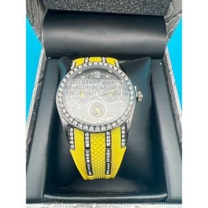 WildLife Heidi Klum Black Dial Crystal Accent Round Case Yellow Band Watch New