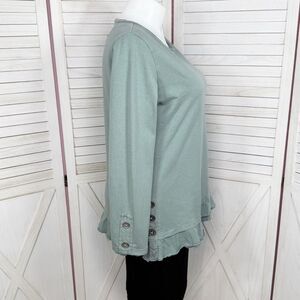 Wild Palms Ruffled Layered Hem Buttons Tunic Top Sage Green Large Cottagecore