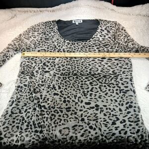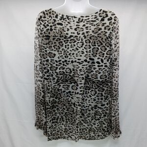 Vintage Wilde Cheetah Print Sheer Lined Scoop Neck Tunic/Blouse Long Bell Sleeve Woman's 3X. Flowy with some stretch.