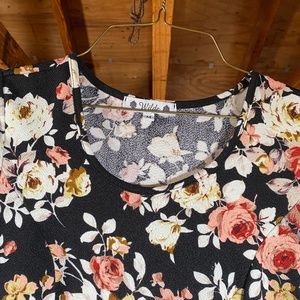 'Wilde' Floral Black Mini Dress w Scoop Neckline