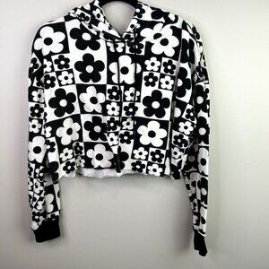 Wildfable black white 70s daiseys crop pull over size medium
