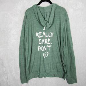 Wildfang Hoodie XXL Green Graphic Sweatshirt Full Zip “I Really Care. Don’T U?”