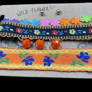 Complete your look with this Wildflower 3-piece embroidered choker necklace and earring set. Each piece is crafted with bold colors and bohemian-inspired details, perfect for layering or wearing solo.