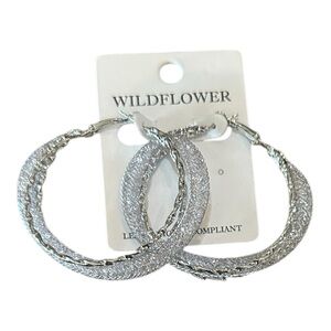 Shimmer and shine with these Wildflower silver-tone hoop earrings featuring a twisted design and textured sparkle detail. Lightweight and eye-catching, they’re perfect for elevating any outfit—from casual looks to a night out.