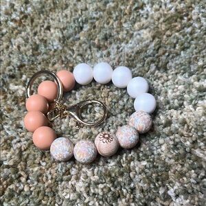 Wildflower Tan/Brown & Cream Keychain Bracelet Wristlet Silicone Beaded 1 Wooden