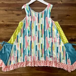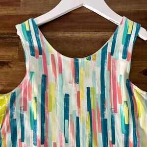 Wildflowers Best Day Ever Watercolor Top Blue Pink Green Sleeveless Knit 14