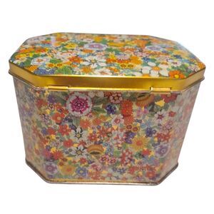 Wildflowers Daher Tin England Hinged Box Biscuit Container Gold Trinket Holder