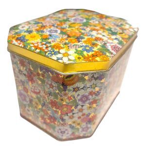 Vintage Wildflowers Design Daher Tin Made in England Hinged Box Metal Biscuit Tea Canister Gold Frame Trinket Holder Storage Container