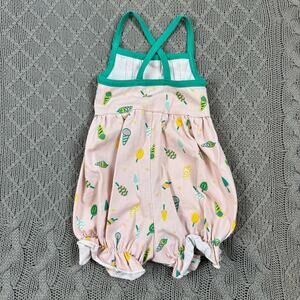 Adorable baby romper with a playful sweet treat ice cream print. Features a mix of pink, green, and yellow colors. Wildflowers brand in size 3 months. Great condition with no flaws. All elastic intact and in great shape.