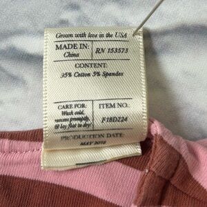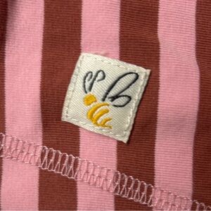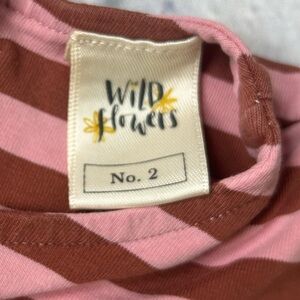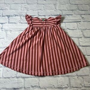 Charming little girls dress by Wildflowers with pink and brown stripes with teal accent button. Soft fabric and stylish design.
