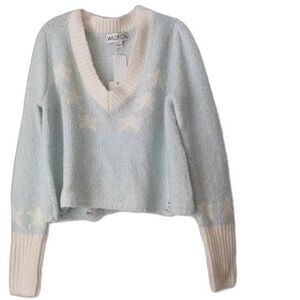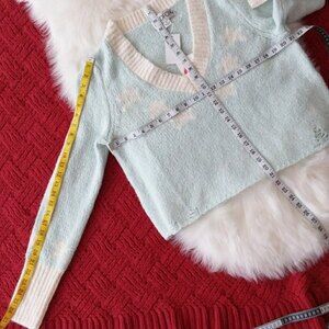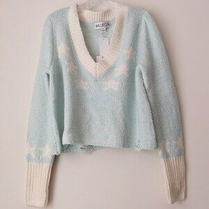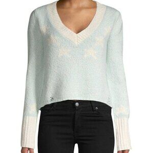 Wildfox Aces Cropped Star Print Long Sleeve Pullover M