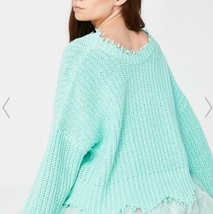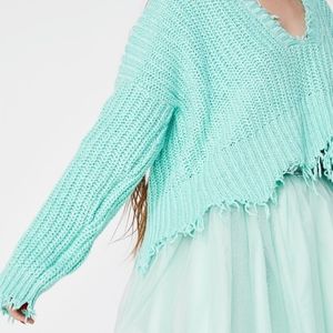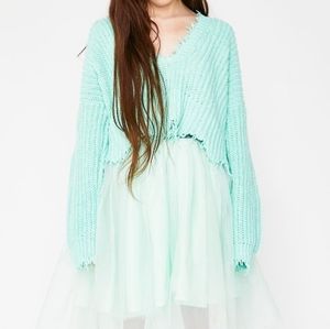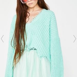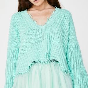 Wildfox Couture Aqua Diver Palmetto Sweater when you wanna serve posh lookz and be comfy AF! Straight chillin’ in this cropped sweater with a distressed edge all ova and a v-neck. NWTs, size medium. Sold out on Dollskill.