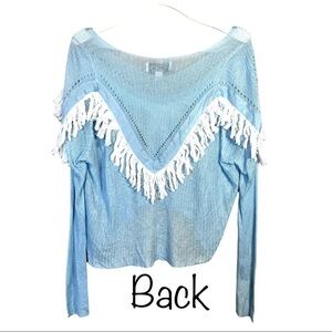 Wildfox Baby Pastel Blue Knit Waylon Fringe Western Sweater Size Medium