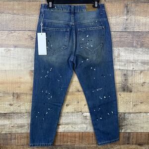Wildfox Baggy Crop Jeans Da Vinci Wash Paint Splatters Blue Denim Size 24 NWT