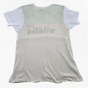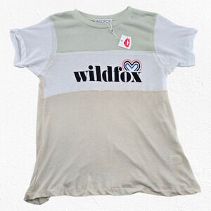 Wildfox Beige Green White Colorblock Heart Logo Semi-Sheer T-Shirt Size XS