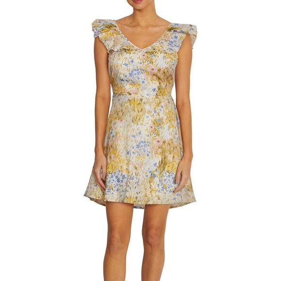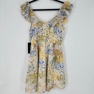 Wildfox Blair Deep V Ruffle Shoulder Painted Flower Fields Womens Mini Dress New