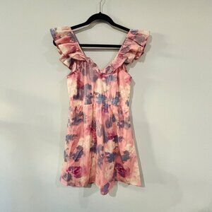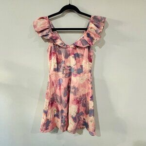 Wildfox Blair Deep V Ruffle Soft Abstract Watercolor Size S