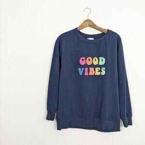 Wildfox Blue Good Vibes Cozy Statement Sweatshirt Size S