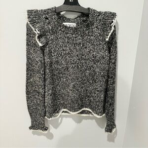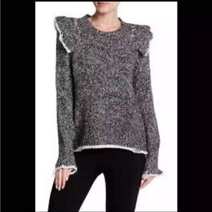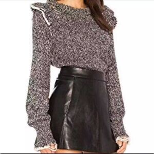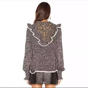 Super cute sweater from Wildfox Couture. Originally from Revolve and sold out. Distressed look with beautiful detail on back. Ruffle trim.