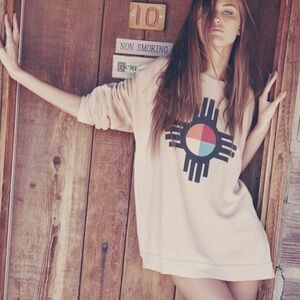 Wildfox Couture Santa Fe Zia Crew Neck Oversized Pullover Sweatshirt