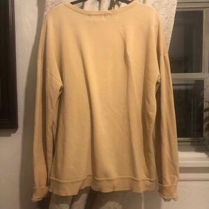 Wildfox Couture Vintage and Rare 2012 Gem. Pale yellow crew neck sweatshirt with extra long sleeves with Santa Fe Zia graphic on front. Vintage wash, look and feel. Pre loved condition, worn vintage spots of discoloring and staining. Material content is 70% cotton and 30% polyester. All signs of wear and vintage shown in photos. RN# 127461 and CA# 30427.