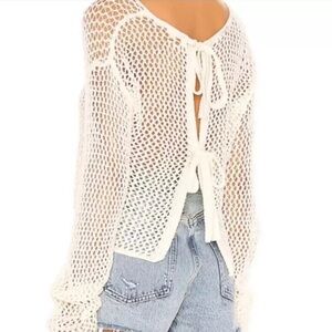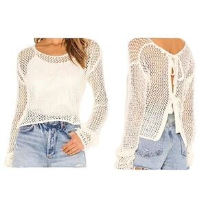 Wildfox Cream Knit Mesh Top Sweater with 2 back ties size Large NWT