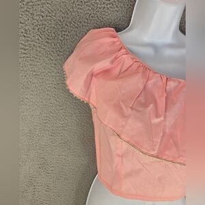 Wildfox Davenay Womens Top Sz M Pink-peach One Shoulder Crop Beads-Metallic