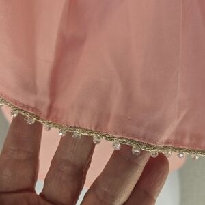 This top is a must-have for any fashion-forward woman. The pink-peach color gives it a soft and feminine touch, while the beaded accents add a touch of glamour. Perfect for pairing with your favorite jeans or skirts, this top is sure to make a statement.