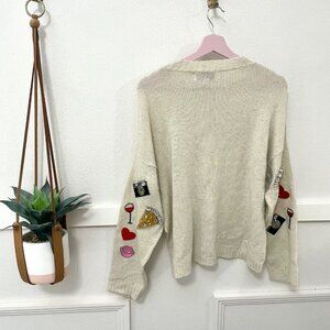 Wildfox Emoji Knit Jeweled Ivory Sweater Size XS