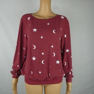Wildfox Essential Moon & Stars Celestial Print Pullover Sweatshirt Brick Red Sm