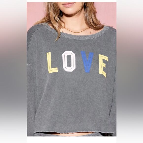 Wildfox Flora Love Oversized Cropped Sweatshirt, NEW flawed Small, MSRP $118