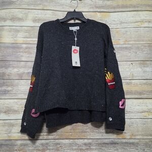 Wildfox French Fries & Kisses Embellished Chunky Knit Sweater Size Small NWT
